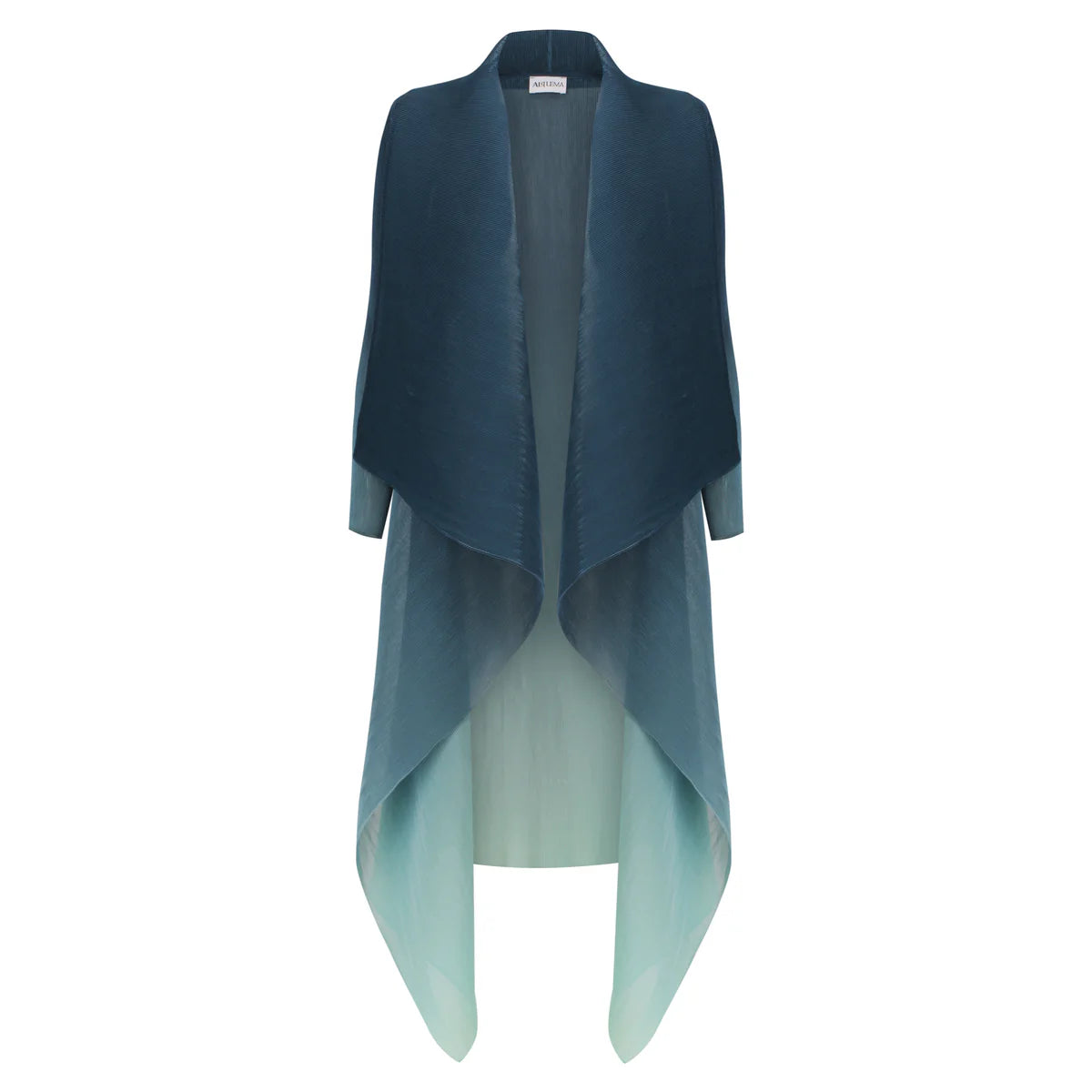 The Collare Coat is reminiscent of a waterfall. The beautiful pleated folds created within the chiffon material make it an easy to wear Alquema piece and is perfectly paired with the Long Estrella Dress.