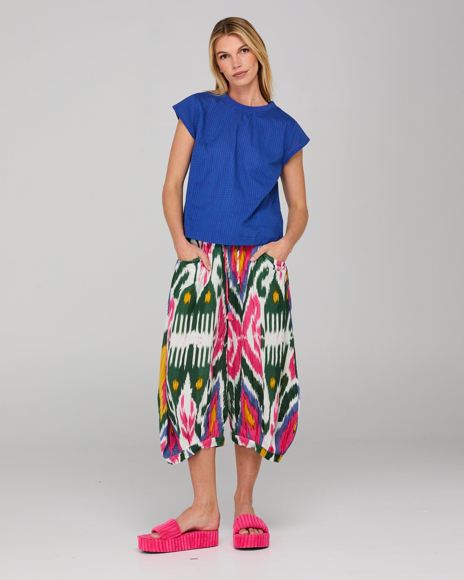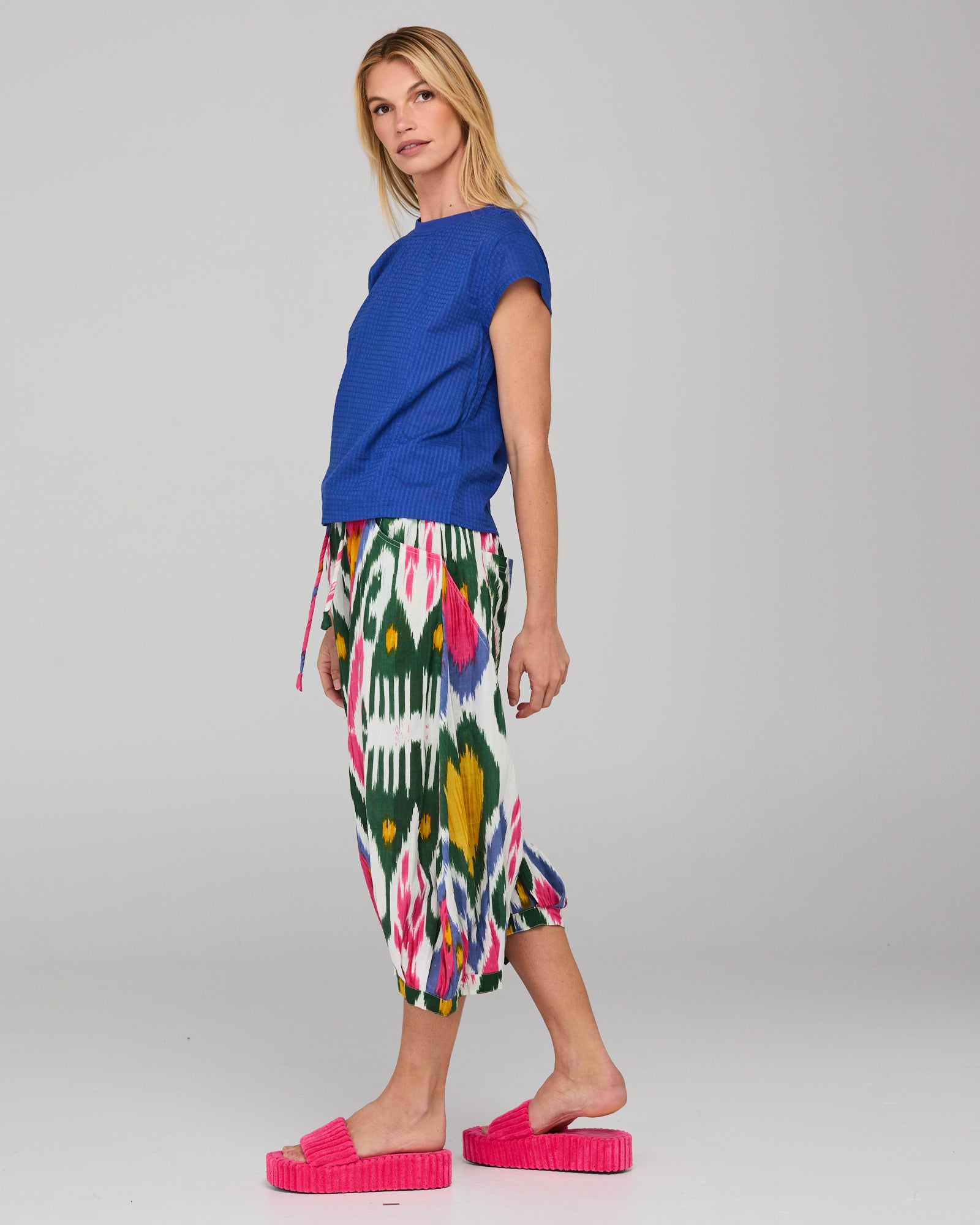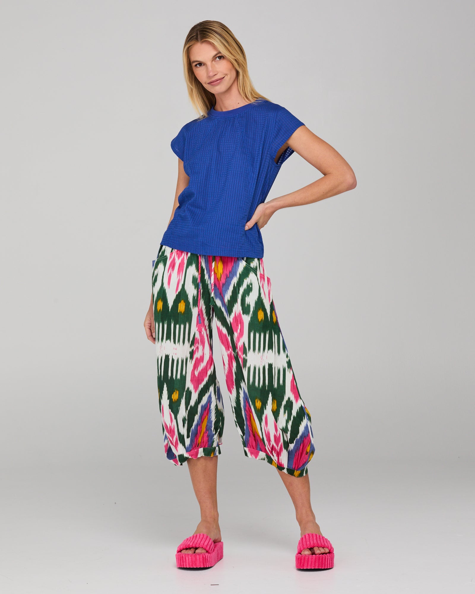 The Boom Shankar Guru Pant is a 3/4 length loose-fitting pant perfect for everyday wear. This style is fitted at the waist with a relaxed, balloon-style leg for ultimate comfort. These 100% cotton bestsellers can be worn with just about anything.