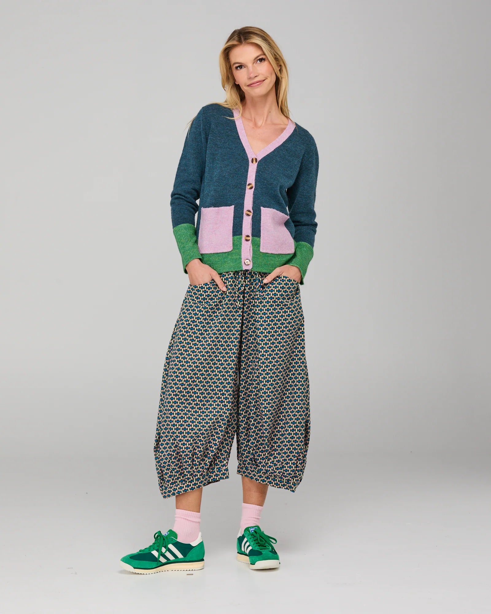 Fit notes: Our Guru Pants are designed to be fitted at the waist with a loose comfy leg. If you are in between sizes we would recommend a size up. Our model is 175cm tall with 81cm bust, 61cm waist, 86cm hips and wears a size 8/XS.
